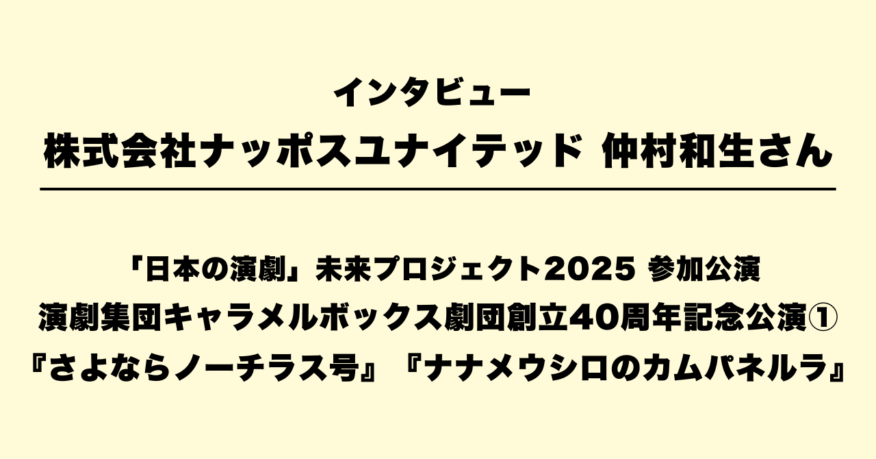 2025年は創立40周年をむかえる演劇集団キャラメルボックスの記念イベントと2本立てツアー公演を主催した株式会社ナッポスユナイテッド。代表取締役の仲村和生氏は、長年キャラメルボックスのチーフプロデューサーを務め、2011年に起業した同社では様々なジャンルの舞台作品を企画・製作している。その仕事について、仲村氏にお話を伺った。